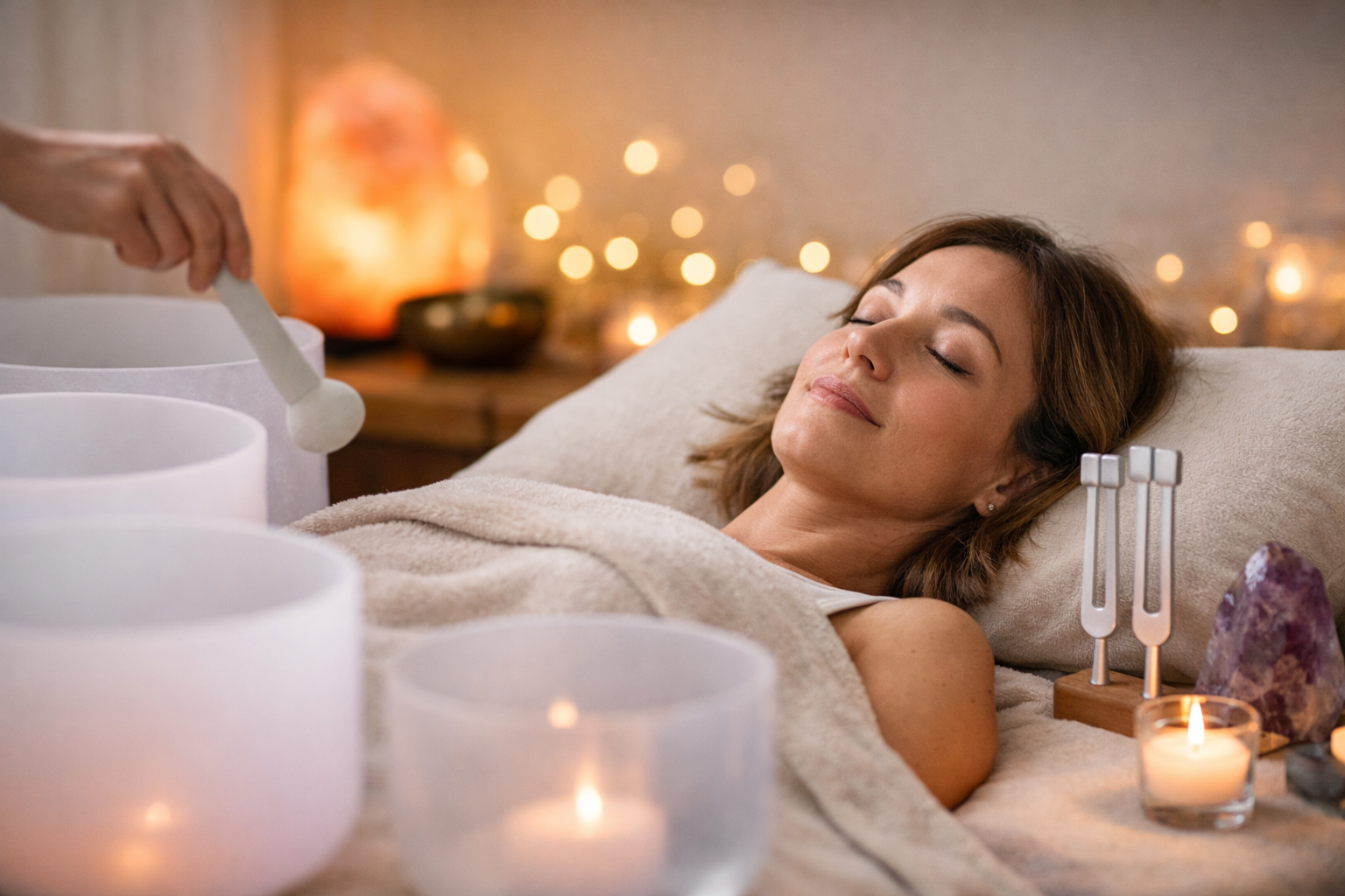 Dans un quotidien qui s’accélère, la sonothérapie agit via les diapasons thérapeutiques et les fréquences 432 Hz des bols en cristal. Les sons se diffusent au cœur des tissus et du champ vibratoire : tensions libérées, mental apaisé, système nerveux régulé.